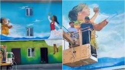 Канттагы көп кабаттуу үйдүн дубалына балдарга арналган мурал тартылууда