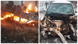Дагы бир үрөй учурган кырсык: Кантта 2 унаа кагышып, бири өрттөнүп кетти